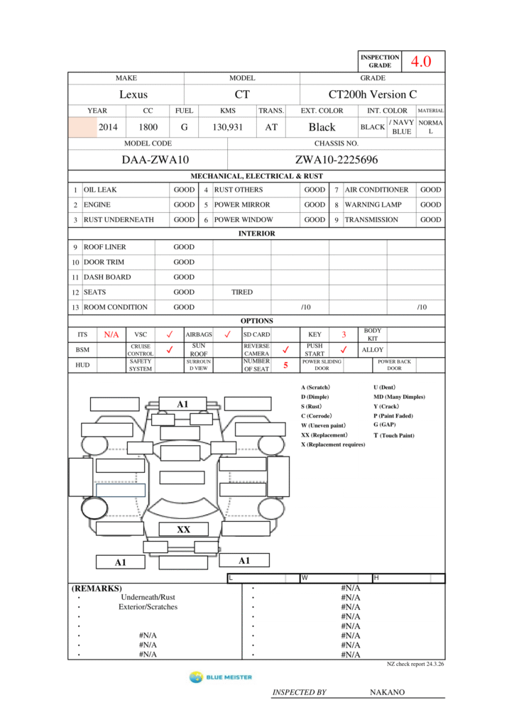 外装・内装・機能・電装・箇所別・装備ごとに詳細に記録した